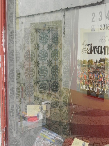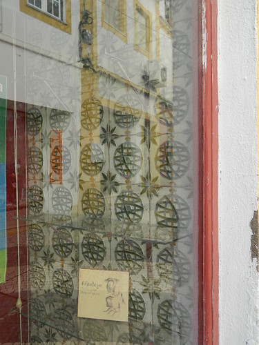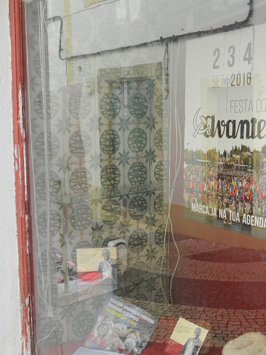 Há dias - foi fascinante (mas também intrigante?), descobrir esses azulejos, e o padrão formado, numa montra de Portalegre: concretamente na sede do PCP.